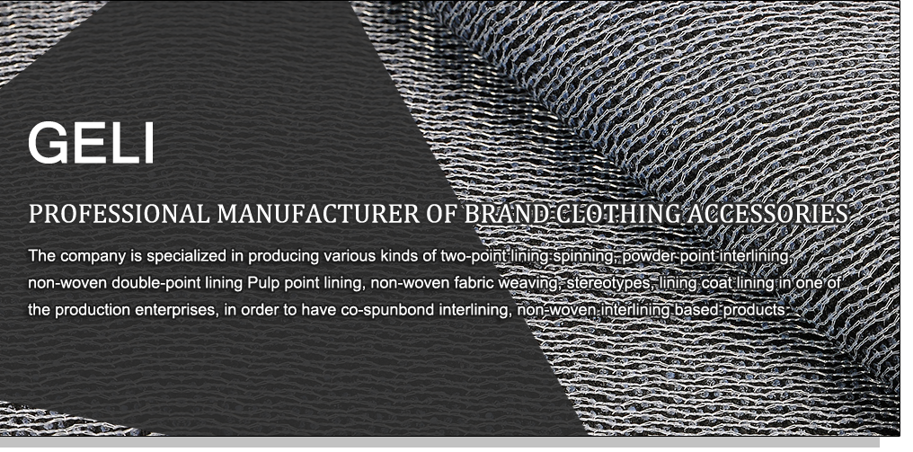 The company is specialized in producing all kinds of interlining production enterprises with spinning double-point lining, powder-point lining, non-woven double-point lining, pulp lining, non-woven fabrics with weaving, setting and lining coating. The main products are spinning interlining and non-woven interlining. |